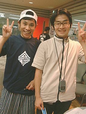 ![]() ★ニックネームが『石田タイヤ』に決まった石田ディレクターと、岡村さん。身長がほとんど一緒なので、 なんだかカワイイ2ショットです。 |