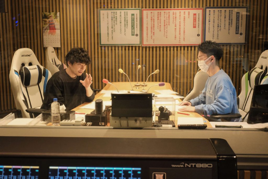 スタジオから、堀くん、加藤くんの顔を見ながら