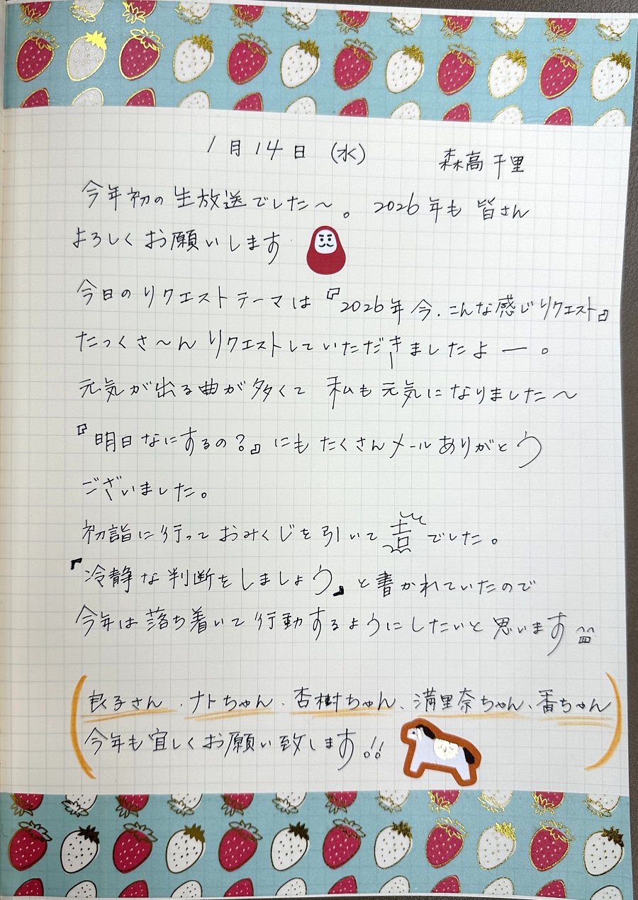 <1/14(水)森高千里 M10 選曲リスト>