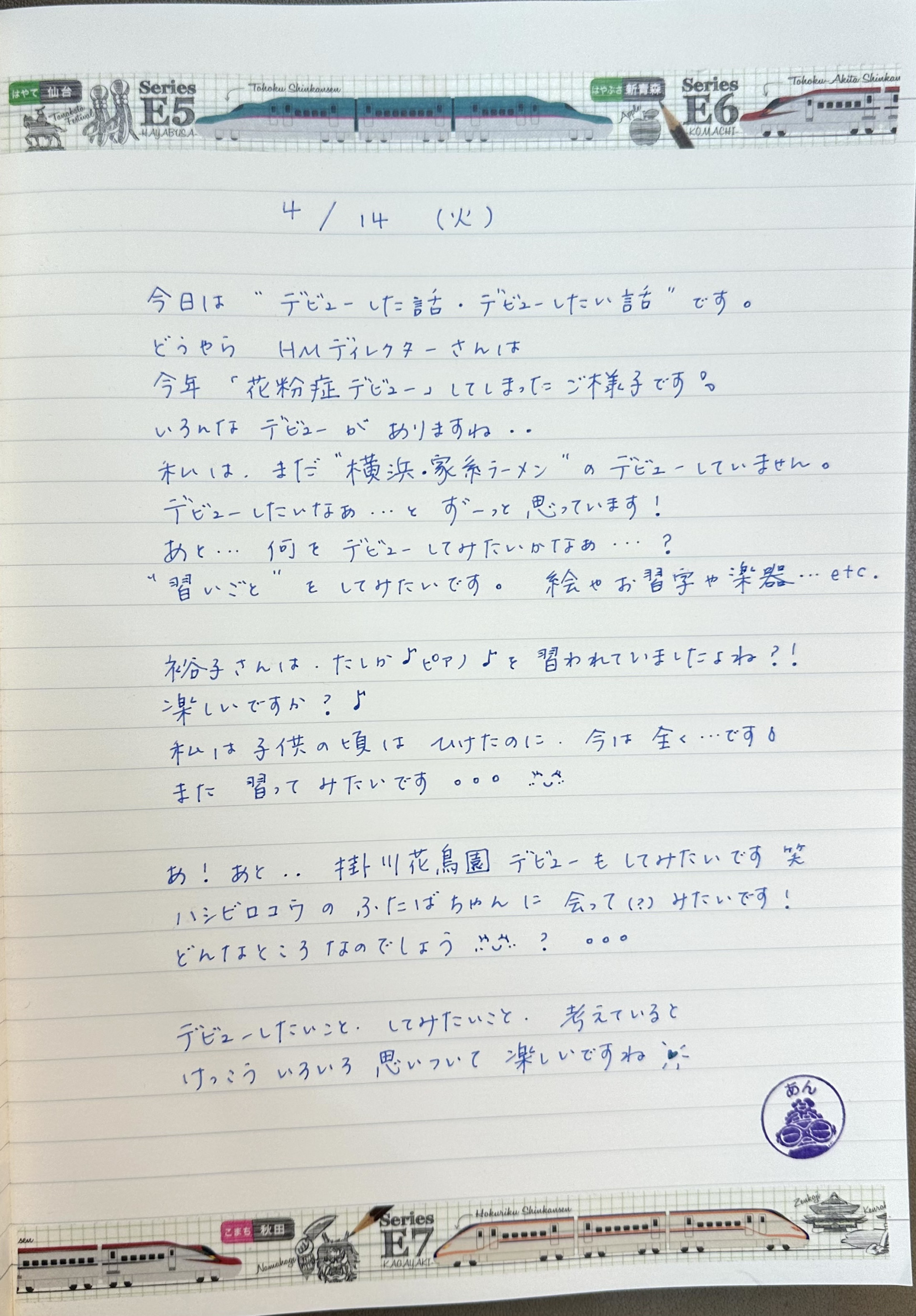 今夜は「デビューしました・したいです」のメッセージテーマで